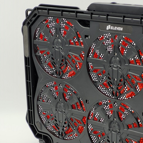 کول پد ELEVEN مدل N706 یکی از بهترین کول پد های سری گیمینگ مناسب لب تاب های گیمینگ هستش. طراحی فوق العاده N706 که توسط شرکت ELEVEN طراحی گردیده و با قدرت خنک کنندگی 6 فن 4.5 اینچی با دور 1100±10%RPM و رنگ آمیزی فوق العاده زیبا بهمراه LED های قرمز که در داخل فن جای گرفته و همچنین پایه قابلیت تنظیم ارتفاع، باعث شده تا یکی از بهترین و کاربردی ترین کول پد های مخصوص لب تاب های گیمینگ باشد. جنس بنده از پلاستیک با کیفیت ABS و فلز می باشد، فلزی بودن صفحه رویی کولپد باعث تبادل بهتر حرارت می شود. این کول پد دارای یک دکمه اسکرولی جهت کم و زیاد کردن سرعت فن ها و همچنین خاموش و روشن کردن تعداد فن ها می باشد و پایه قابل تنظیم در زیر کول پد به صورت چند حالته و همچنین دو پایه روی کول پد جهت ثابت نگه دارنده لپ تاپ در حالت شیبدار میباشد . این کول پد مناسب لب تاب های گیمینگ که حرارت زیادی تولید میکنند هستش و به راحتی میتوانند تبادل حرارت را ایجاد کنند.
