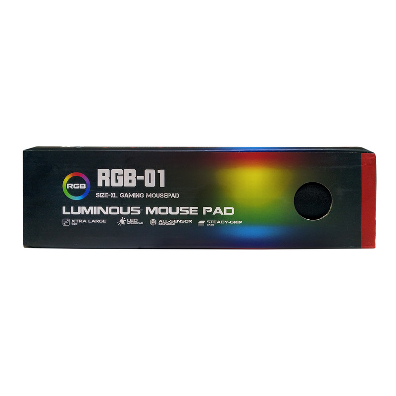 موس پد مخصوص بازی لومینوس مدل RGB طرح بلک لایت یک محصول بی نظیر و بسیار با کیفیت میباشد.با نوار نورانی RGB اطراف آن زیبایی بسیار زیادی را به میز کامپیوتر شما میدهد.این موس پد به وسیله یک کابل USB به کامپیوتر وصل میشود و نوار نورانی دور این محصول روشن میشود همچنین رنگ این نوار قابل تغییر میباشد.سایز این موس پد XL میباشد و ابعاد دقیق آن 30x80 سانتیمتر میباشد. برای گیمرها قطعات کامپیوتر از اهمیت بالایی برخوردار بوده و بسیاری از قطعات که برای کاربران عادی کیفیت و چگونگی آنها مهم نیست در اجزای بازیهای کامپیوتری و پیاده کردن هرچه دقیقتر فرمانهای بازی نقش بسیار مهمی را ایفا میکنند. گیمرها به دنبال ماوسهای با دقت بالاتر میروند. ولی ماوس بهتنهایی برای این موضوع کافی نیست. بازیهای Shooting مانند آنها که شامل نشانهگیری و تیراندازی هستند این نیاز را به کاربران حرفهای ایجاب میکنند که علاوه بر ماوس با دقت بالا پد مناسب و بزرگی را هم برای ماوس داشته باشند. استفاده از پد ماوس لومینوس میتواند باعث افزایش دقت حرکت ماوس و کاهش اصطحکاک مچ دست با سطح میز شده و در نهایت راحتی بیشتری را به همراه داشته باشد ابعاد 800 در 300 میلیمتر و با ضخامت 4 میلی متر فضای خوبی را برای حرکت آزادانهی ماوس به کاربر میدهد. لبههای ماوس پد، لیزر کاری شده تا هم تیزی آزاردهنده نداشته باشد و هم دیرتر خراب شود. الگوهای موجود در سطح زیرین ماوس پد باعث ایجاد اصطحکاک بر سطح و جلوگیری از لغزش آن میشود که درنتیجه عملکرد بهتر و نشانهگیری دقیقتر را برای کاربر به ارمغان میآورد.این ماوسپد دارای نوار رنگی LED است که منجر به ایجاد فضایی دلنشین برای کاربر میشود. این محصول به دلیل ابعاد مناسب برای طراحی هم مناسب است. برای خاموش شدن نوار نورانی کافی است دکمه روی موس پد رو 7 ثانیه نگه دارید.