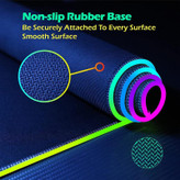 موس پد مخصوص بازی لومینوس مدل RGB طرح بلک لایت یک محصول بی نظیر و بسیار با کیفیت میباشد.با نوار نورانی RGB اطراف آن زیبایی بسیار زیادی را به میز کامپیوتر شما میدهد.این موس پد به وسیله یک کابل USB به کامپیوتر وصل میشود و نوار نورانی دور این محصول روشن میشود همچنین رنگ این نوار قابل تغییر میباشد.سایز این موس پد XL میباشد و ابعاد دقیق آن 30x80 سانتیمتر میباشد. برای گیمرها قطعات کامپیوتر از اهمیت بالایی برخوردار بوده و بسیاری از قطعات که برای کاربران عادی کیفیت و چگونگی آنها مهم نیست در اجزای بازیهای کامپیوتری و پیاده کردن هرچه دقیقتر فرمانهای بازی نقش بسیار مهمی را ایفا میکنند. گیمرها به دنبال ماوسهای با دقت بالاتر میروند. ولی ماوس بهتنهایی برای این موضوع کافی نیست. بازیهای Shooting مانند آنها که شامل نشانهگیری و تیراندازی هستند این نیاز را به کاربران حرفهای ایجاب میکنند که علاوه بر ماوس با دقت بالا پد مناسب و بزرگی را هم برای ماوس داشته باشند. استفاده از پد ماوس لومینوس میتواند باعث افزایش دقت حرکت ماوس و کاهش اصطحکاک مچ دست با سطح میز شده و در نهایت راحتی بیشتری را به همراه داشته باشد ابعاد 800 در 300 میلیمتر و با ضخامت 4 میلی متر فضای خوبی را برای حرکت آزادانهی ماوس به کاربر میدهد. لبههای ماوس پد، لیزر کاری شده تا هم تیزی آزاردهنده نداشته باشد و هم دیرتر خراب شود. الگوهای موجود در سطح زیرین ماوس پد باعث ایجاد اصطحکاک بر سطح و جلوگیری از لغزش آن میشود که درنتیجه عملکرد بهتر و نشانهگیری دقیقتر را برای کاربر به ارمغان میآورد.این ماوسپد دارای نوار رنگی LED است که منجر به ایجاد فضایی دلنشین برای کاربر میشود. این محصول به دلیل ابعاد مناسب برای طراحی هم مناسب است. برای خاموش شدن نوار نورانی کافی است دکمه روی موس پد رو 7 ثانیه نگه دارید.